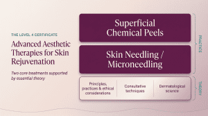 The Level 4 Certificate in Advanced Aesthetic Therapies introduces a slightly different experience. While you still gain hands-on training in microneedling and superficial chemical peels, there is a stronger emphasis on understanding the context around those treatments.